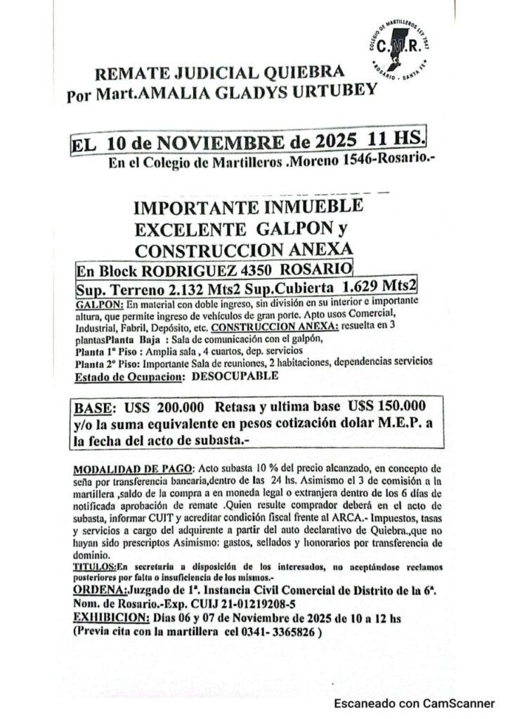 / Subastas / Por Colegio de Martilleros de Santa Fe