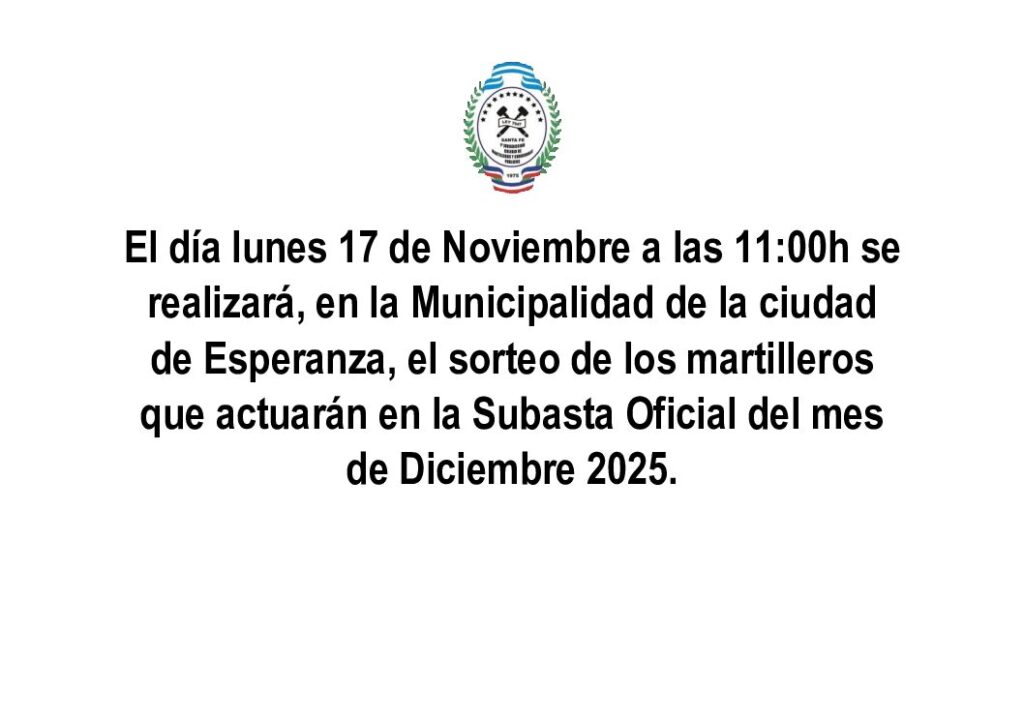 * Subasta oficial en Esperanza el 05/12/2025.- Leer más »