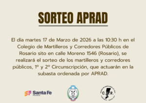 Colegio de Martilleros de Santa Fe Cambia tu foto de portadaSubir Cambia tu foto de portadaSubir Colegio de Martilleros de Santa Fe El estado de la cuenta de este usuario es Aprobado Información Información Entradas Entradas Comentarios Comentarios * Remate en Santa Fe el 28/04/2026.- Hace 3 días in: Subastas sin comentarios * Reunión de la Región Centro en Rosario.- Hace 3 semanas in: Noticias sin comentarios * Remate en Santa Fe el 08/04/2026.- Hace 3 semanas in: Subastas sin comentarios * Remate en Santa Fe el 04/04/2026.- Hace 3 semanas in: Subastas sin comentarios * Sorteo para remates de APRAD.- Hace 3 semanas in: Noticias sin comentarios * Remate en Santa Fe el 31/03/2026.- Hace 3 semanas in: Sin categoría, Subastas sin comentarios * Reunión de Comisión de Enlace.- Hace 1 mes in: Noticias sin comentarios * Sorteo APRAD 17/03/2026.- Hace 1 mes in: Noticias sin comentarios * Reunión con autoridades de APRAD.- Hace 1 mes in: Noticias sin comentarios * Día de la mujer 08/03/2026.- Hace 1 mes in: Noticias sin comentarios cargar más entradas